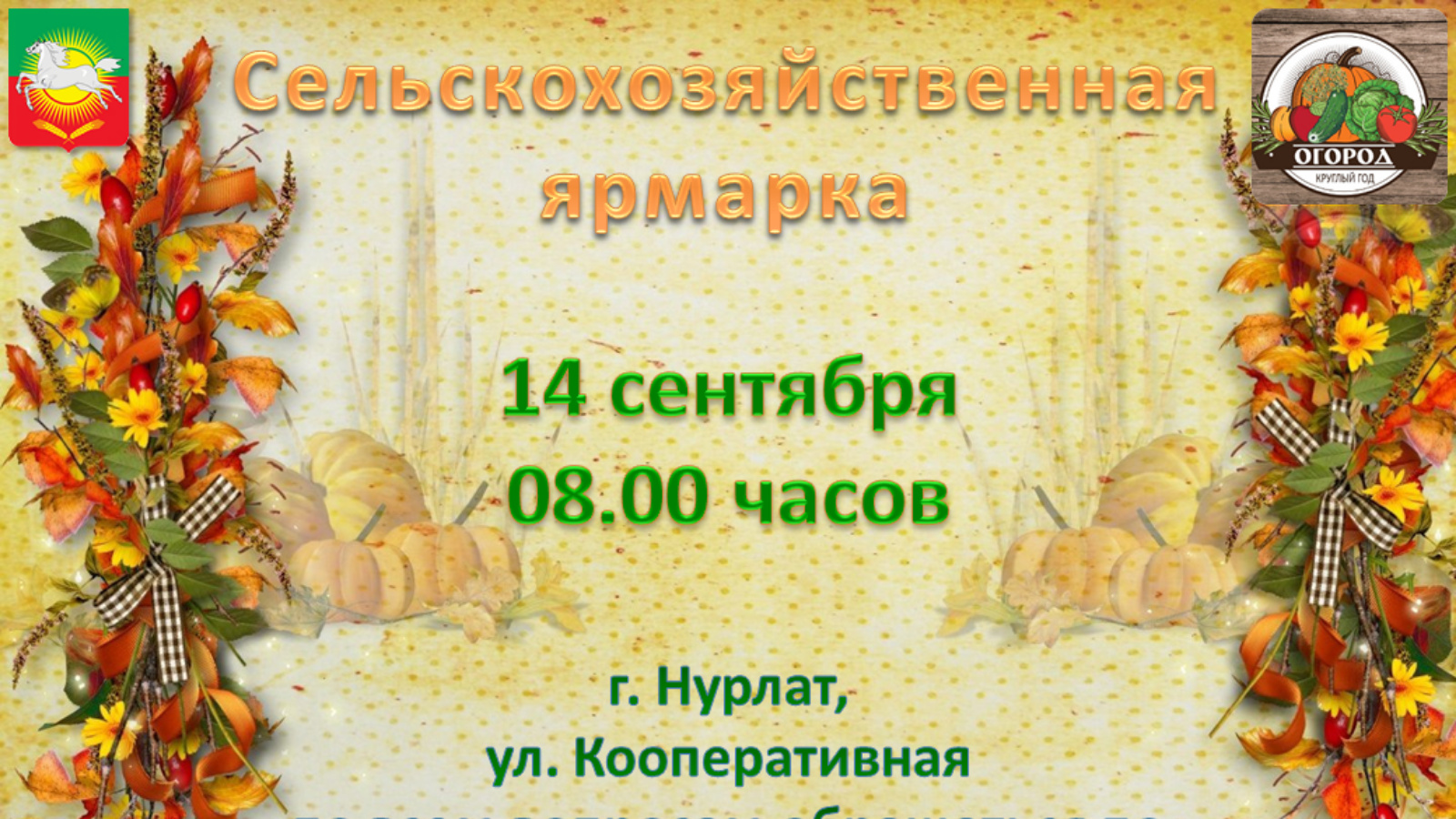 Кадерле нурлатлылар, шәһәр һәм районыбыз кунаклары, сезне көзге авыл хуҗалыгы ярминкәсендә катнашырга чакырабыз.