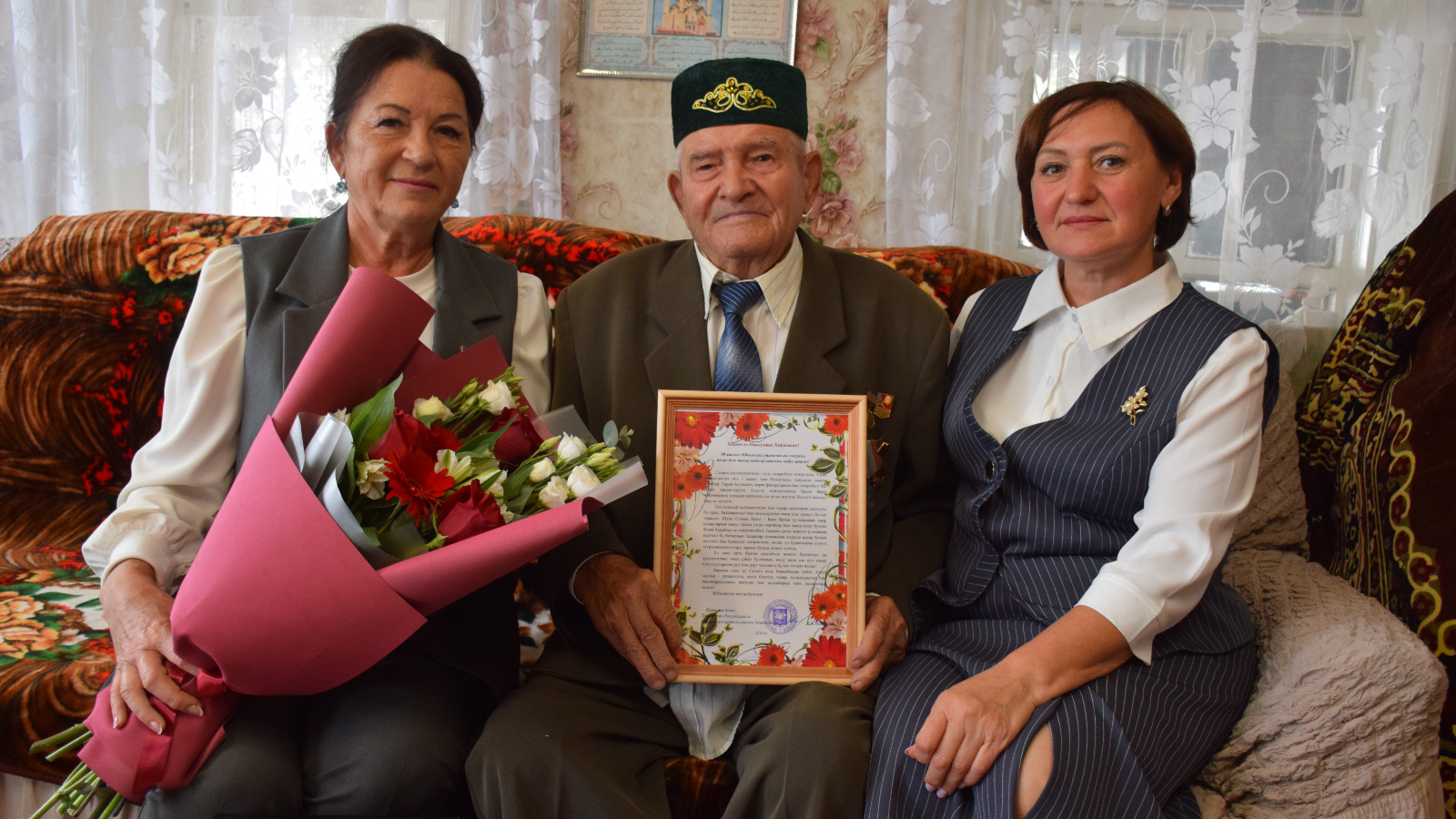 Башкарма комитет җитәкчесенең социаль мәсьәләләр буенча урынбасары вазыйфаларын башкаручы Әлфия Галәүтдинова юбилярга район Башлыгы Дамир Ишкинеев исеменнән котлау хаты һәм истәлекле бүләк тапшырды. Тантанада шулай ук Иске Чаллы авыл җирлеге башлыгы Татьяна Савинова да катнашты.