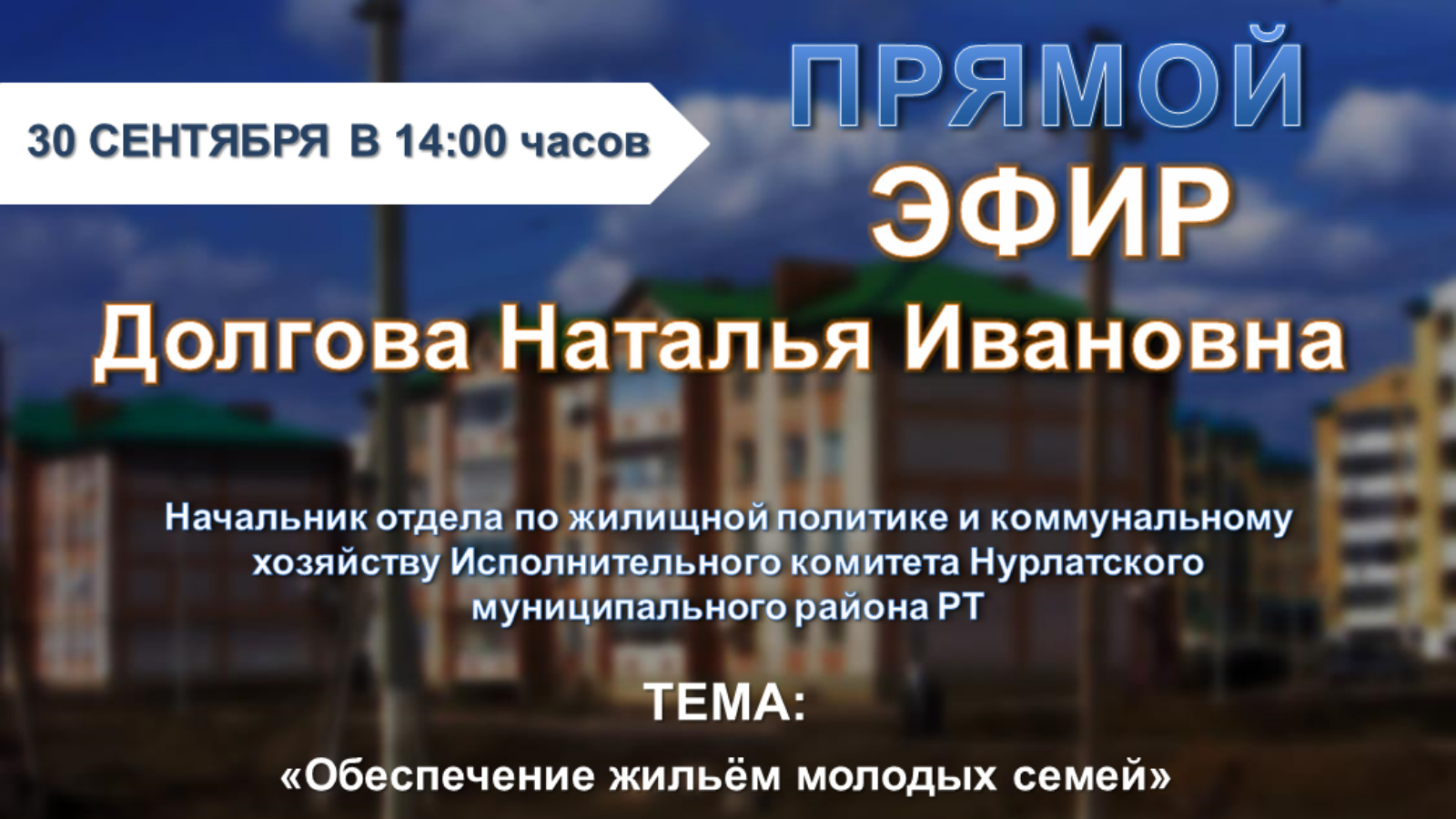 Татарстан Республикасы Нурлат муниципаль районы Башкарма комитетының торак сәясәте һәм коммуналь хуҗалык бүлеге башлыгы Наталья Ивановна Долгова белән туры эфир оештырылачак.